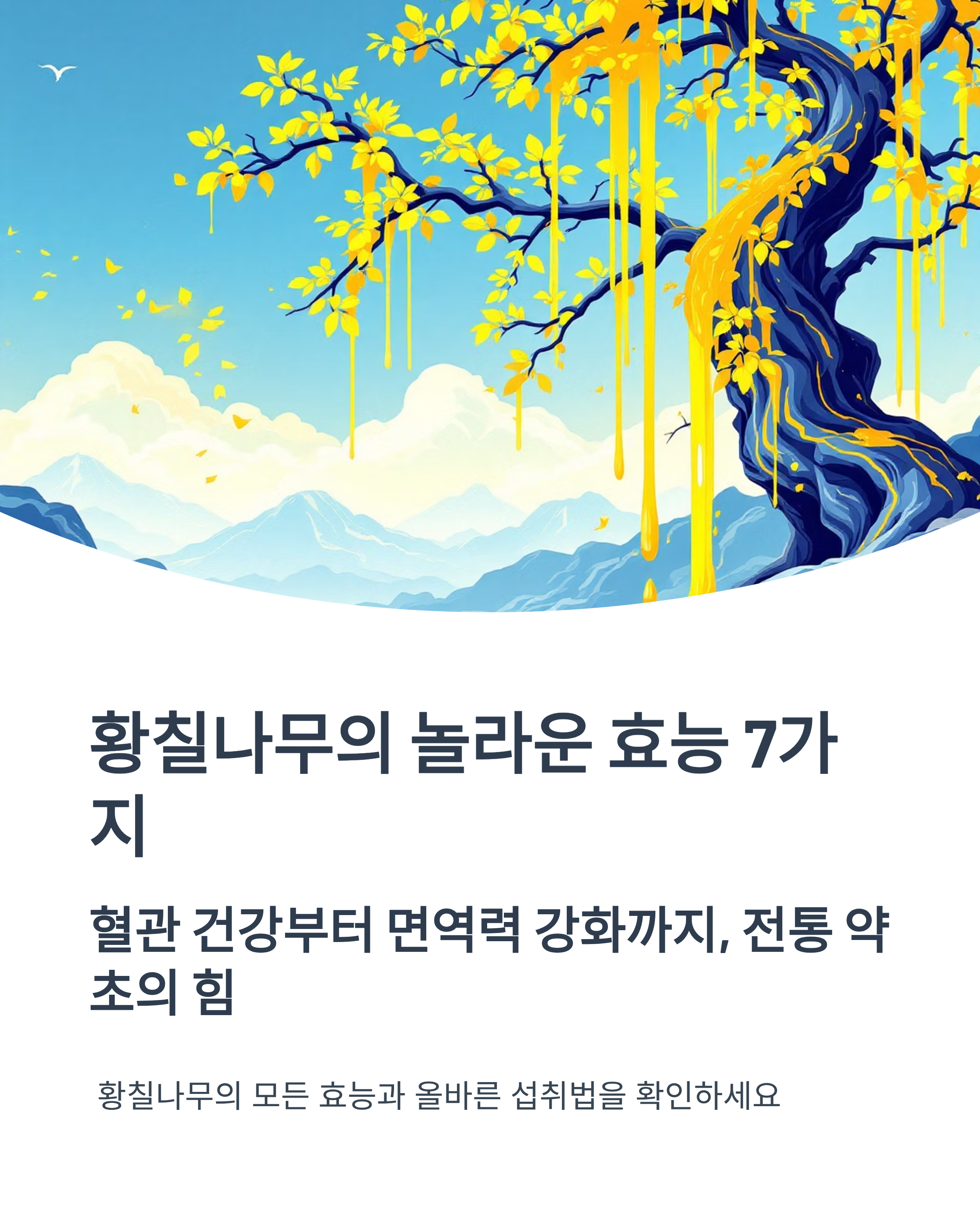 - 황칠나무는 혈관, 간, 면역, 관절, 정신 건강에 두루 효과적입니다.