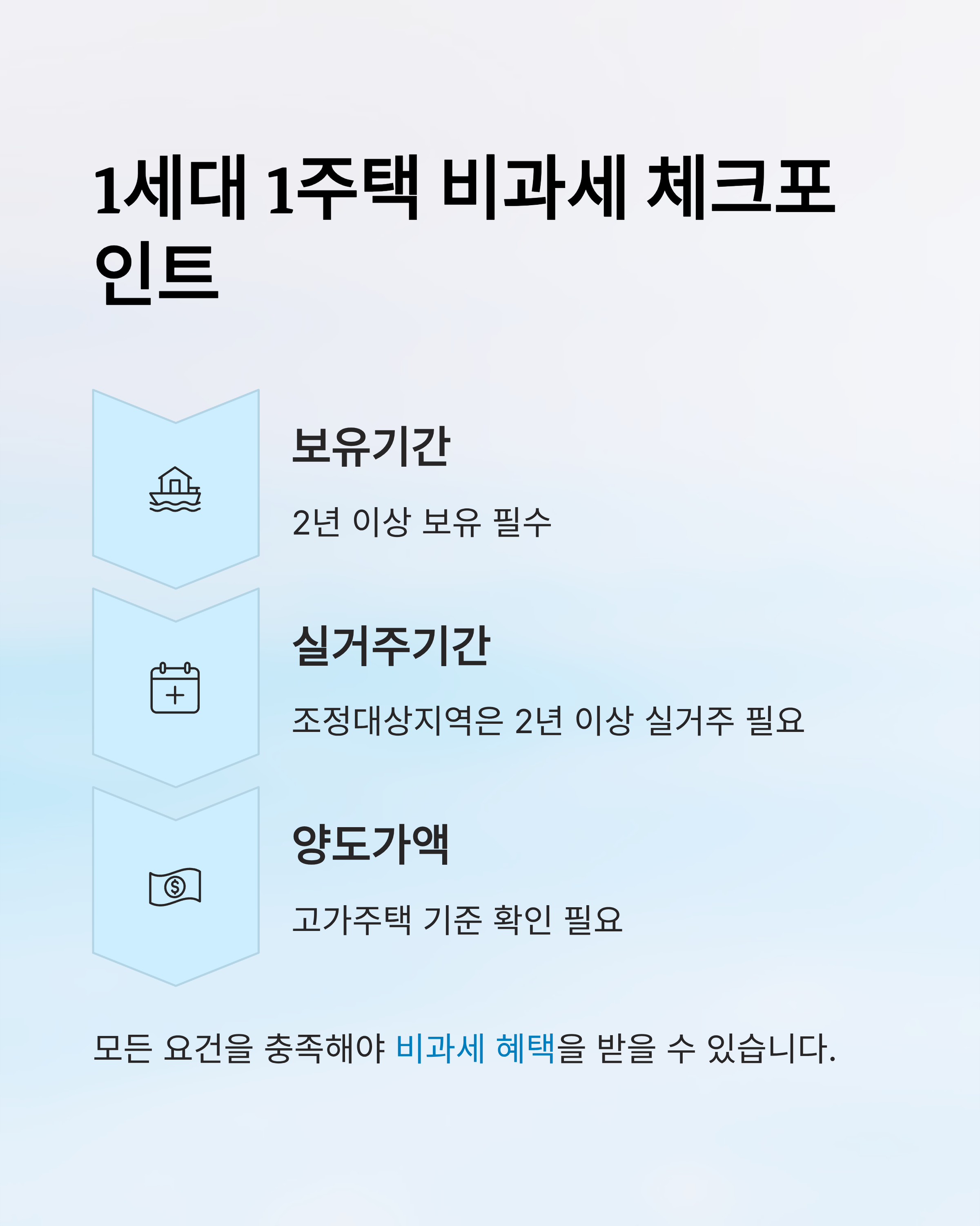 - 1세대 1주택 비과세 가능성: 실거주기간·보유기간·양도가액 요건 충족 여부