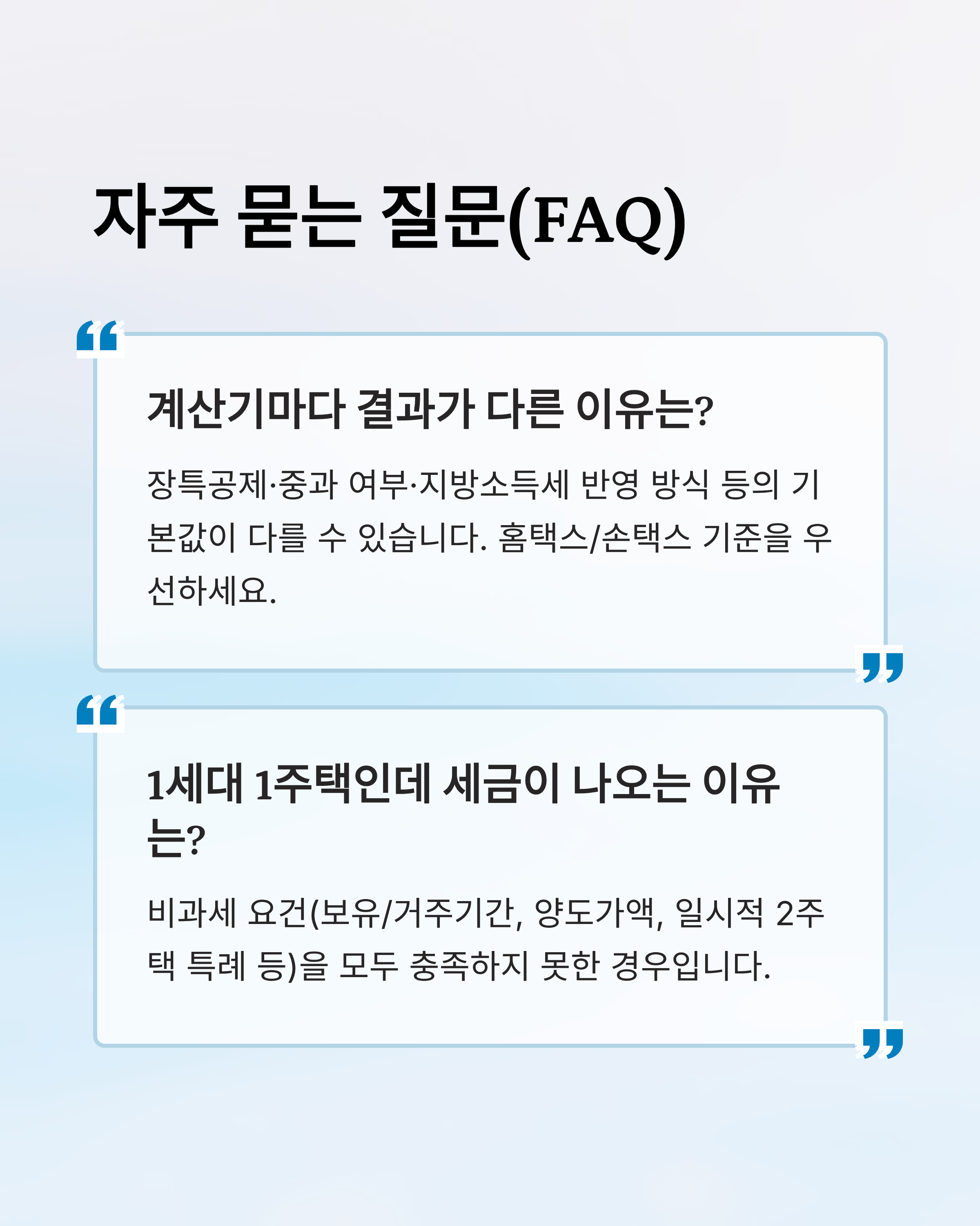 정확한 입력과 교차 모의계산이 절세의 첫걸음입니다. 케이스가 복잡(다주택·조정대상지역·특례 적용 등)하다면 결과 화면을 PDF로 저장해 세무전문가와 함께 검토하세요.