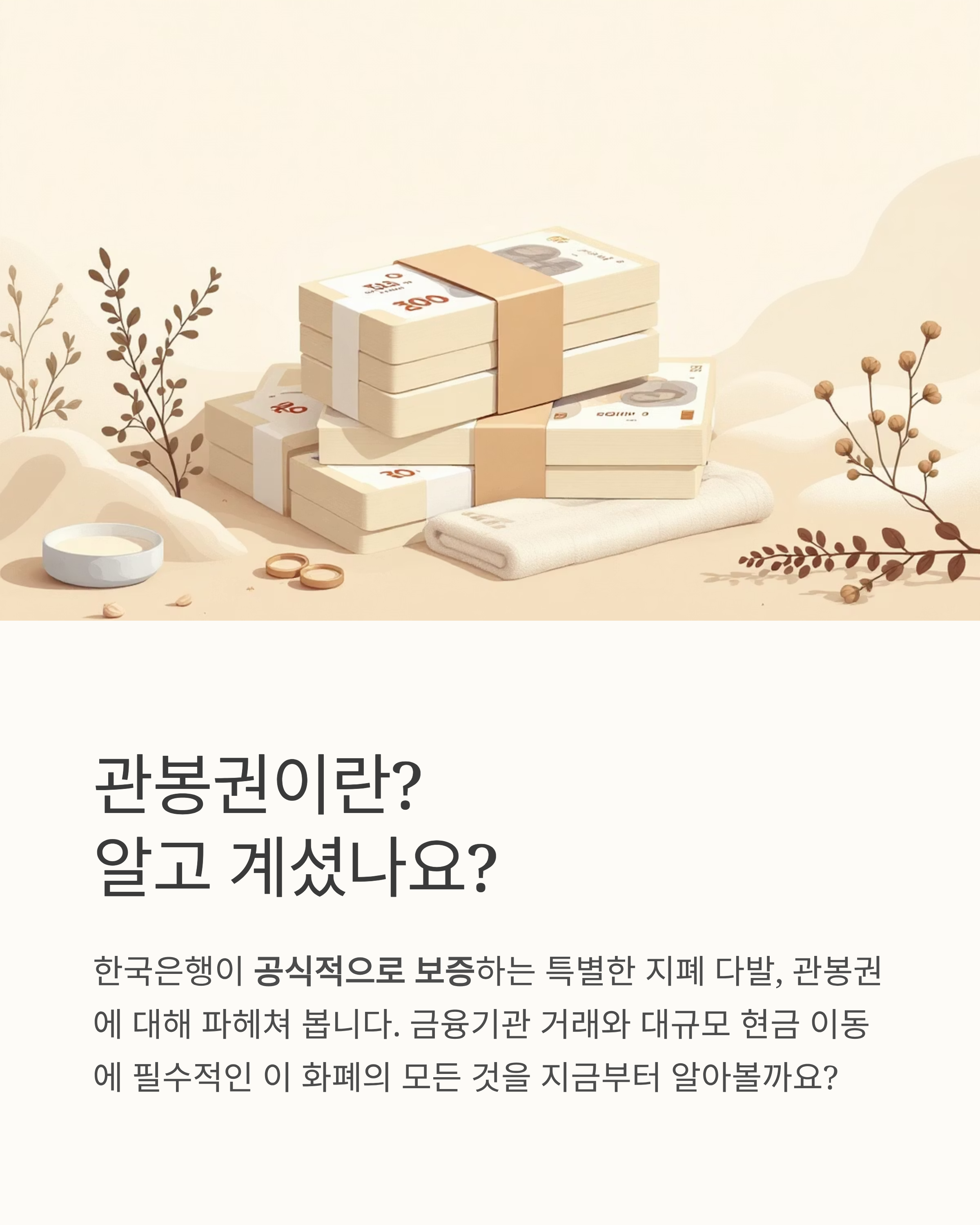 - 중요 포인트: 띠지가 훼손·분실되면 관봉권의 공신력은 즉시 상실하며, 일반 현금 다발과 동일하게 취급될 수 있습니다.