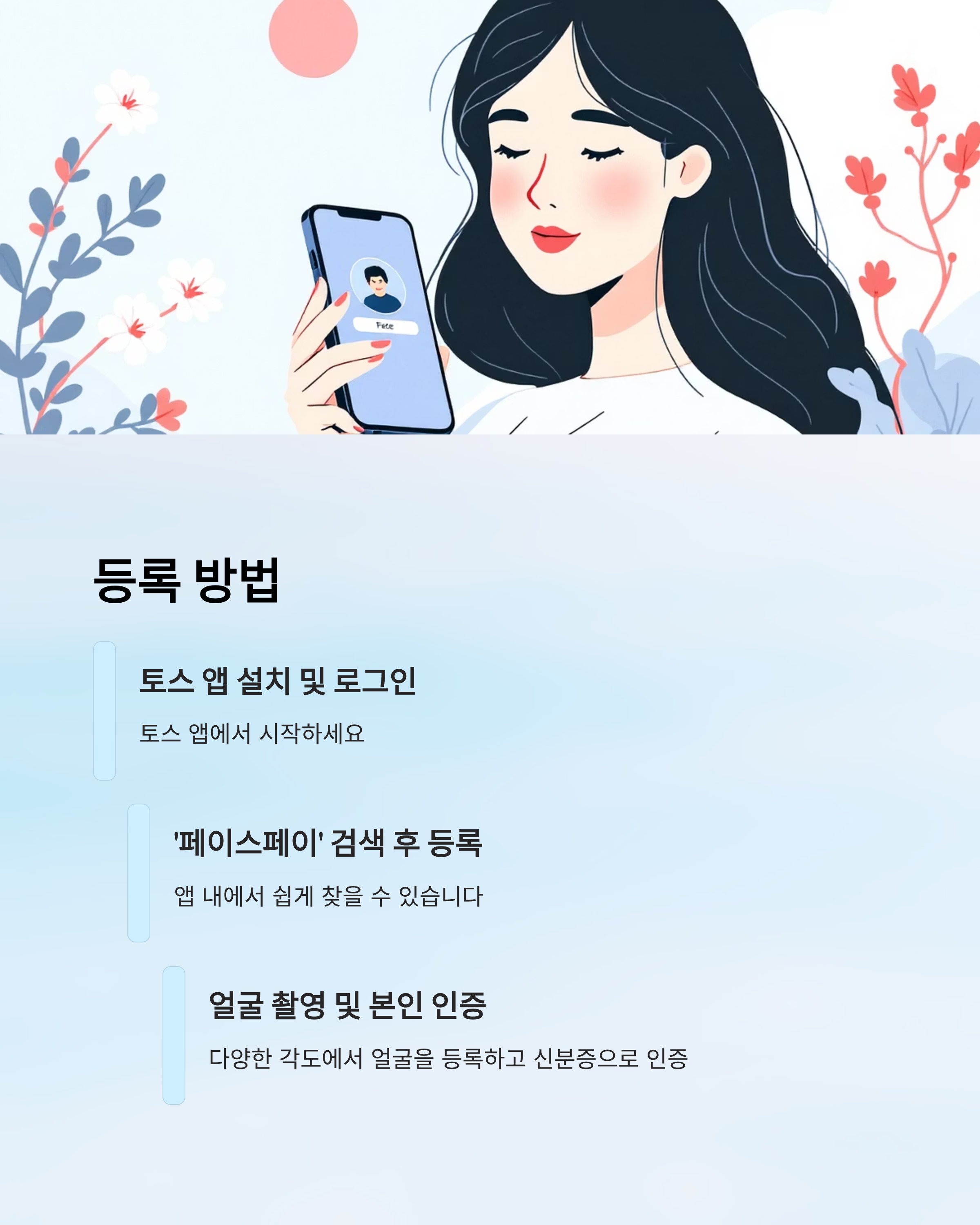 토스 페이스페이는 다음의 간단한 절차를 통해 바로 등록할 수 있습니다.