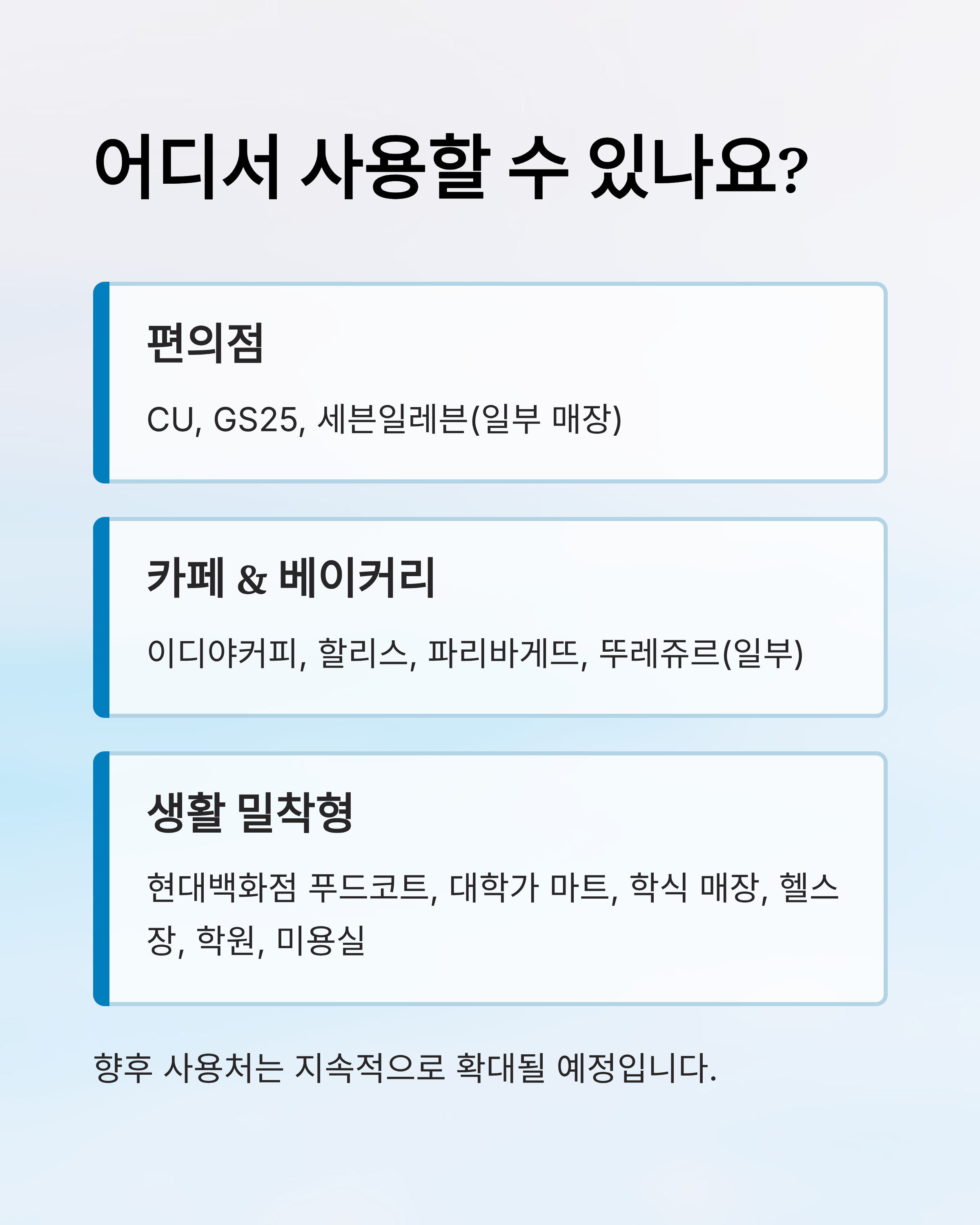 향후 사용처는 지속적으로 확대될 예정이니, 실생활에서 더욱 자주 활용될 수 있습니다.