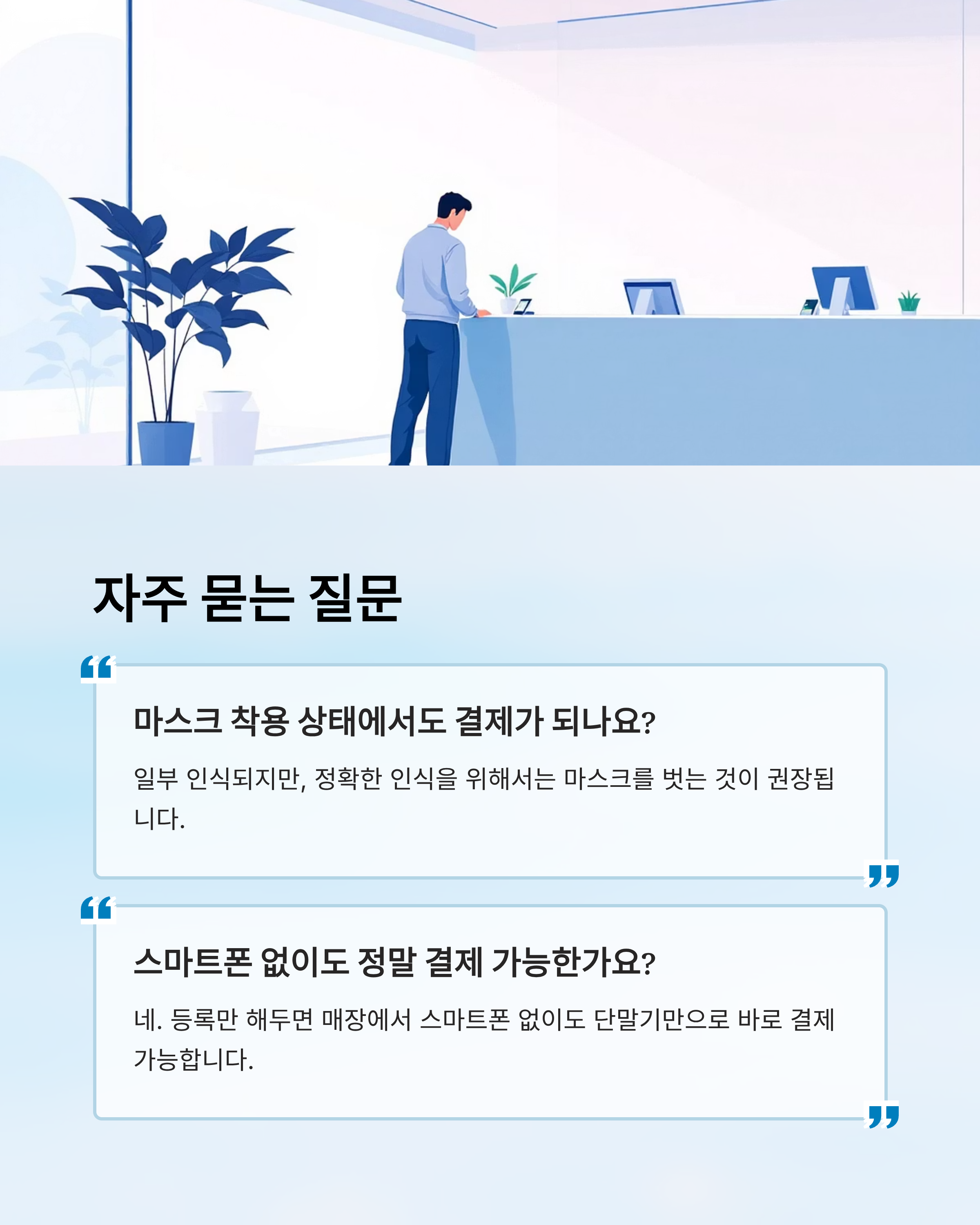 - 안경, 마스크는 결제 시 벗는 것이 인식률 향상에 도움됩니다.