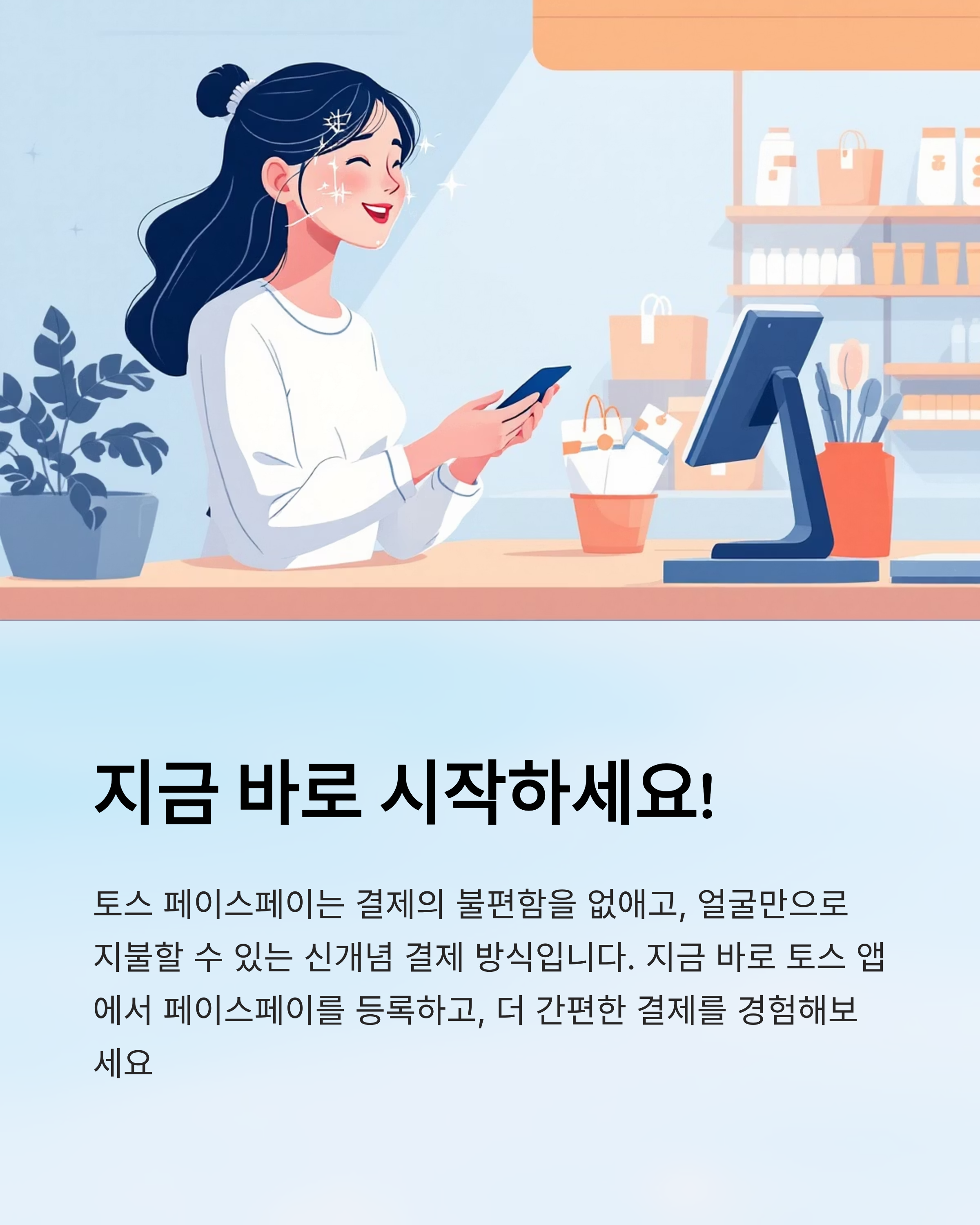 지금 바로 토스 앱에서 페이스페이를 등록하고, 더 간편한 결제를 경험해보세요.