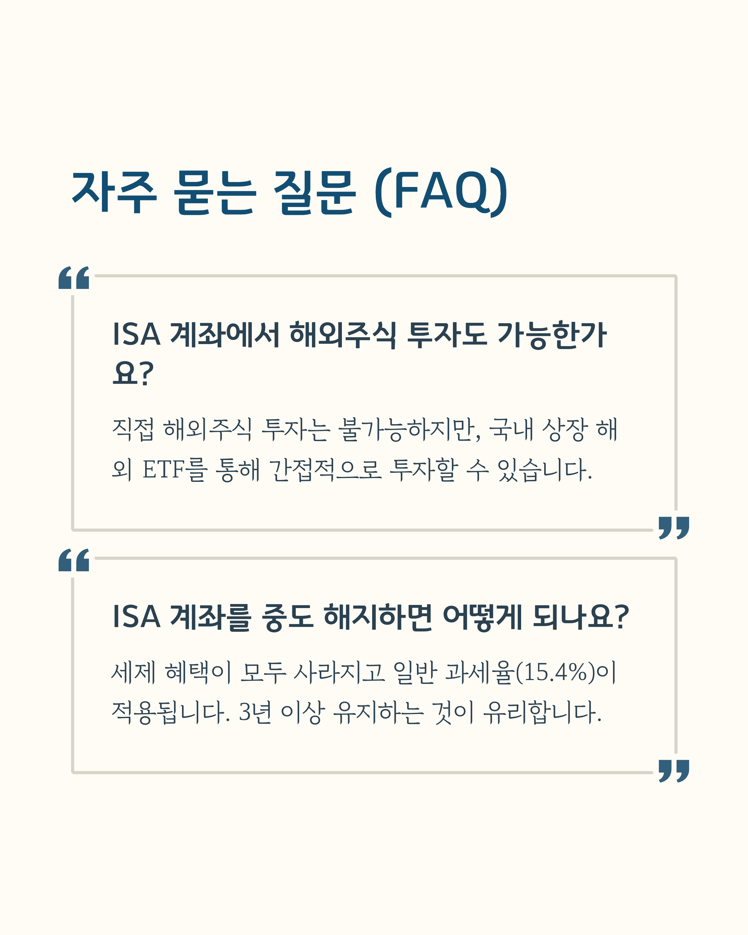 - 금융소득종합과세 대상자는 일반 ISA 가입 제한(일부만 가능)
