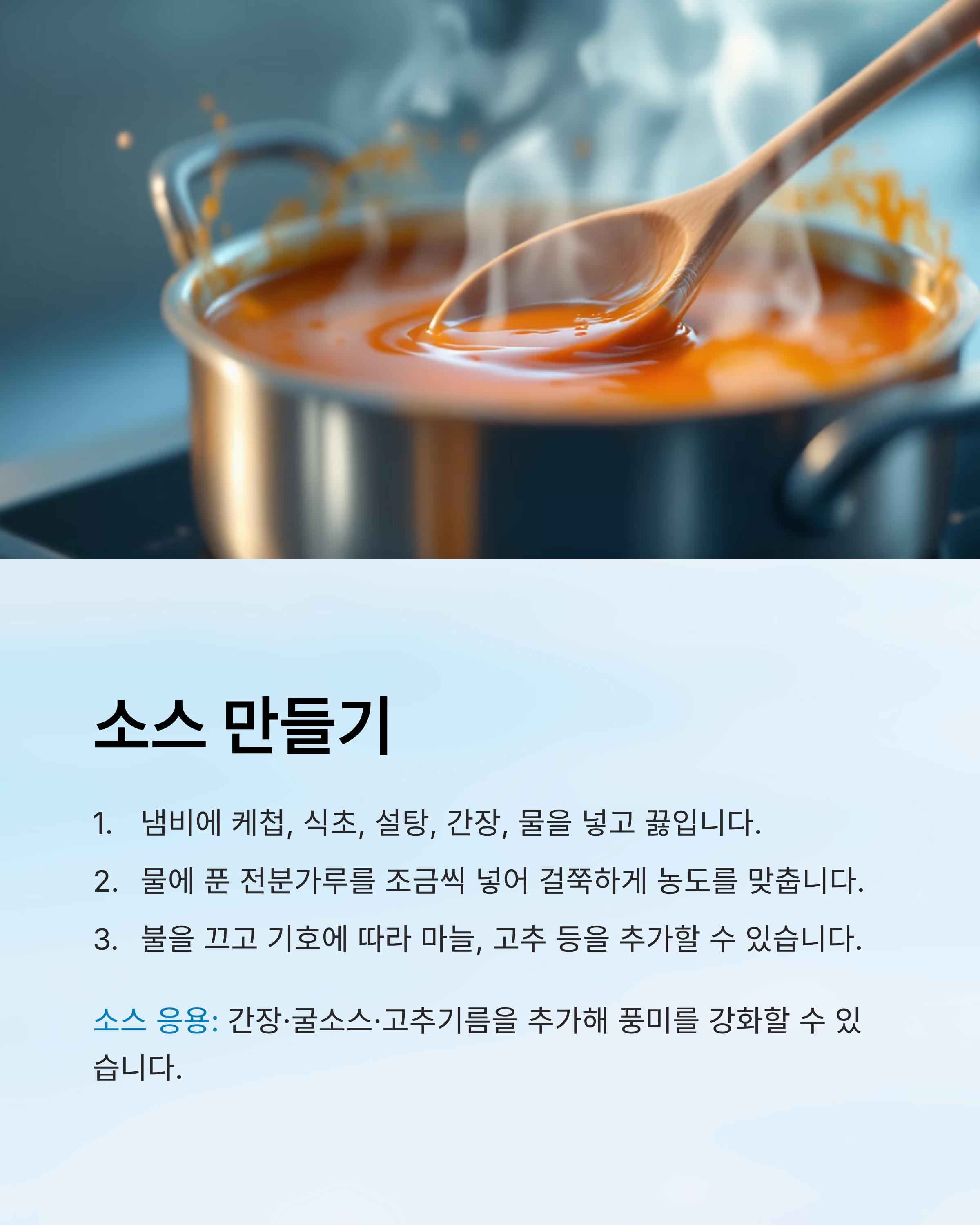 튀김과 소스만 제대로 조절하면, 집에서도 전문점 못지않은 맛을 낼 수 있습니다.