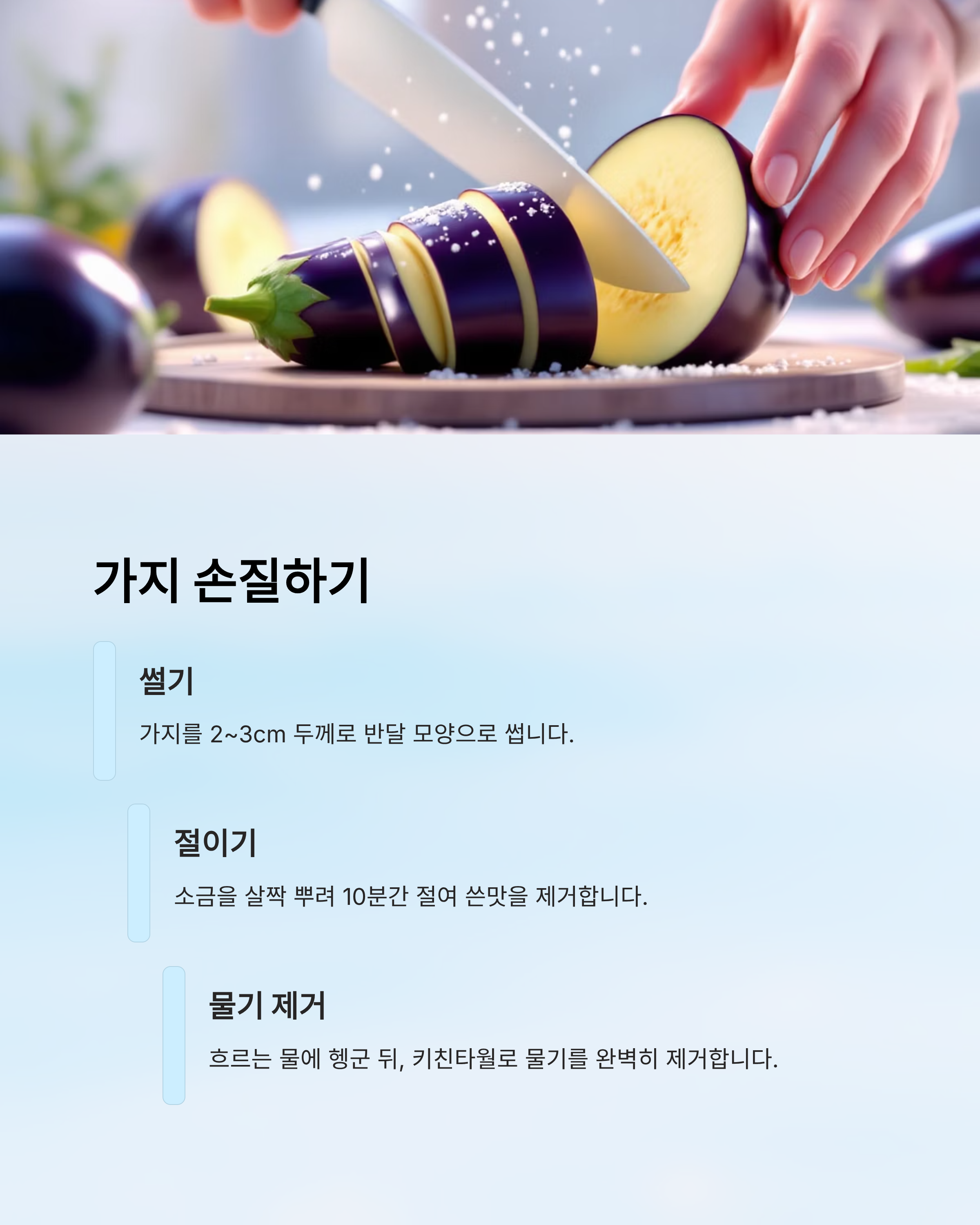 - 가지를 2~3cm 두께로 반달 모양 썰기